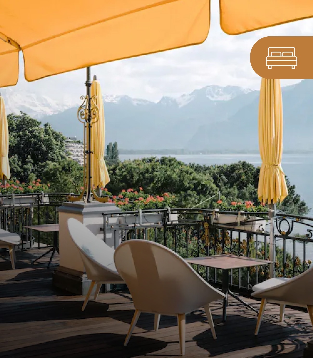 A Belle Époque gem on Lake Geneva, this 4-star hotel offers breathtaking Alpine views, elegant rooms, and gourmet dining. Ideally located near Montreux’s lakeside promenade, it provides a luxurious stay steeped in Swiss charm.